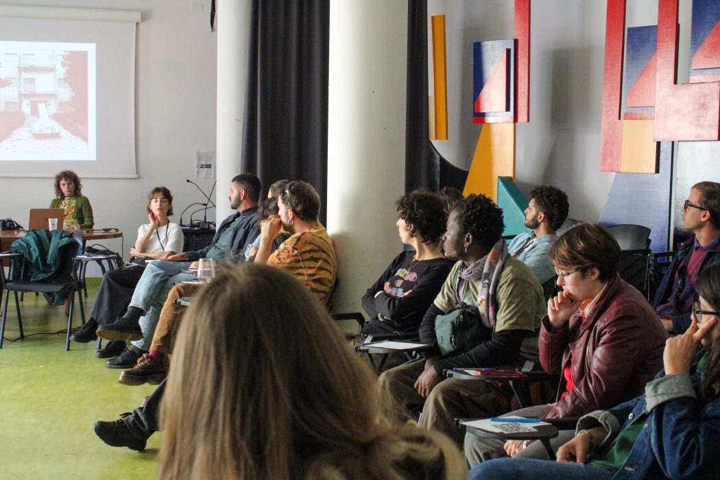 Àprile ha raccontato la propria esperienza a partire dall’idea originaria del loro progetto: la casa come spazio libero per l’arte. Un’ispirazione nata dagli studi sulle gallerie d’appartamento, che negli anni hanno dimostrato come aprire le porte delle abitazioni possa trasformarsi in un gesto culturale, accessibile e replicabile. Da qui la scelta di dare vita a un festival indipendente e gratuito, sperimentando formati alternativi che mettono al centro la relazione tra persone e la coprogettazione tra chi ospita e partecipa.