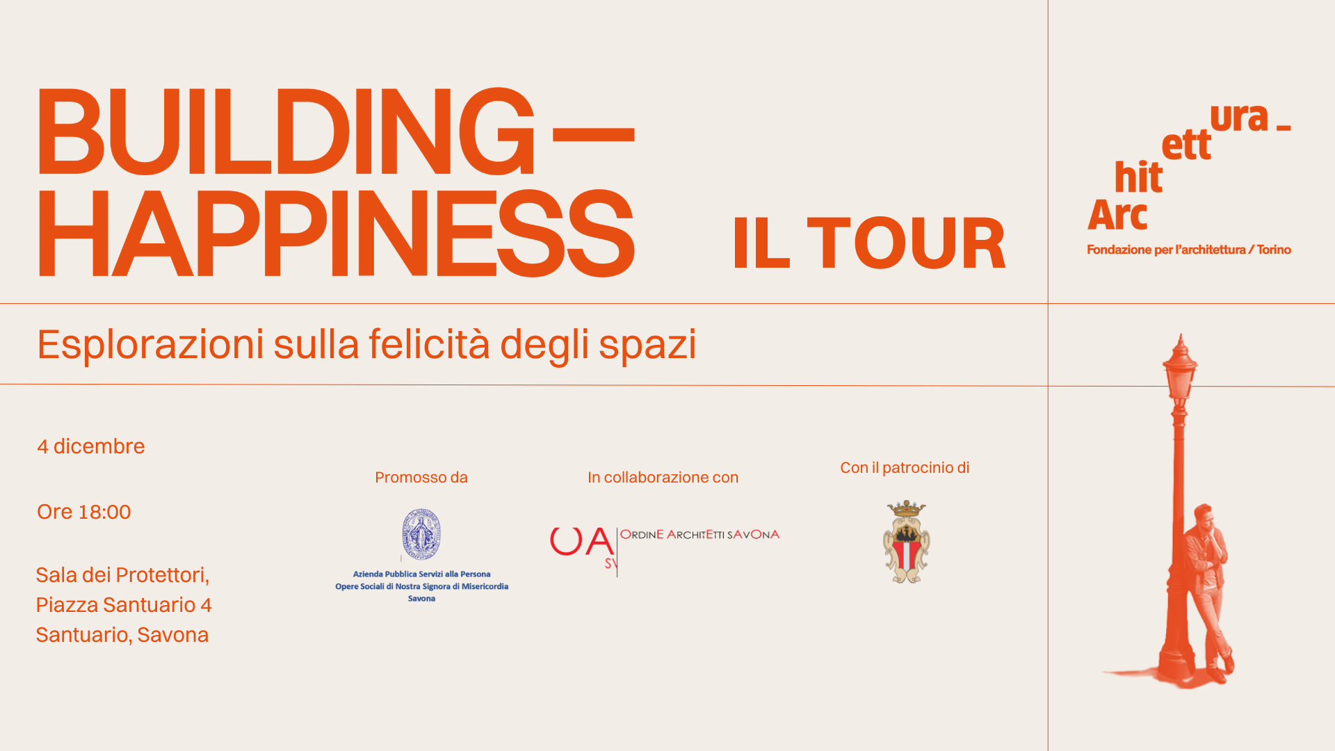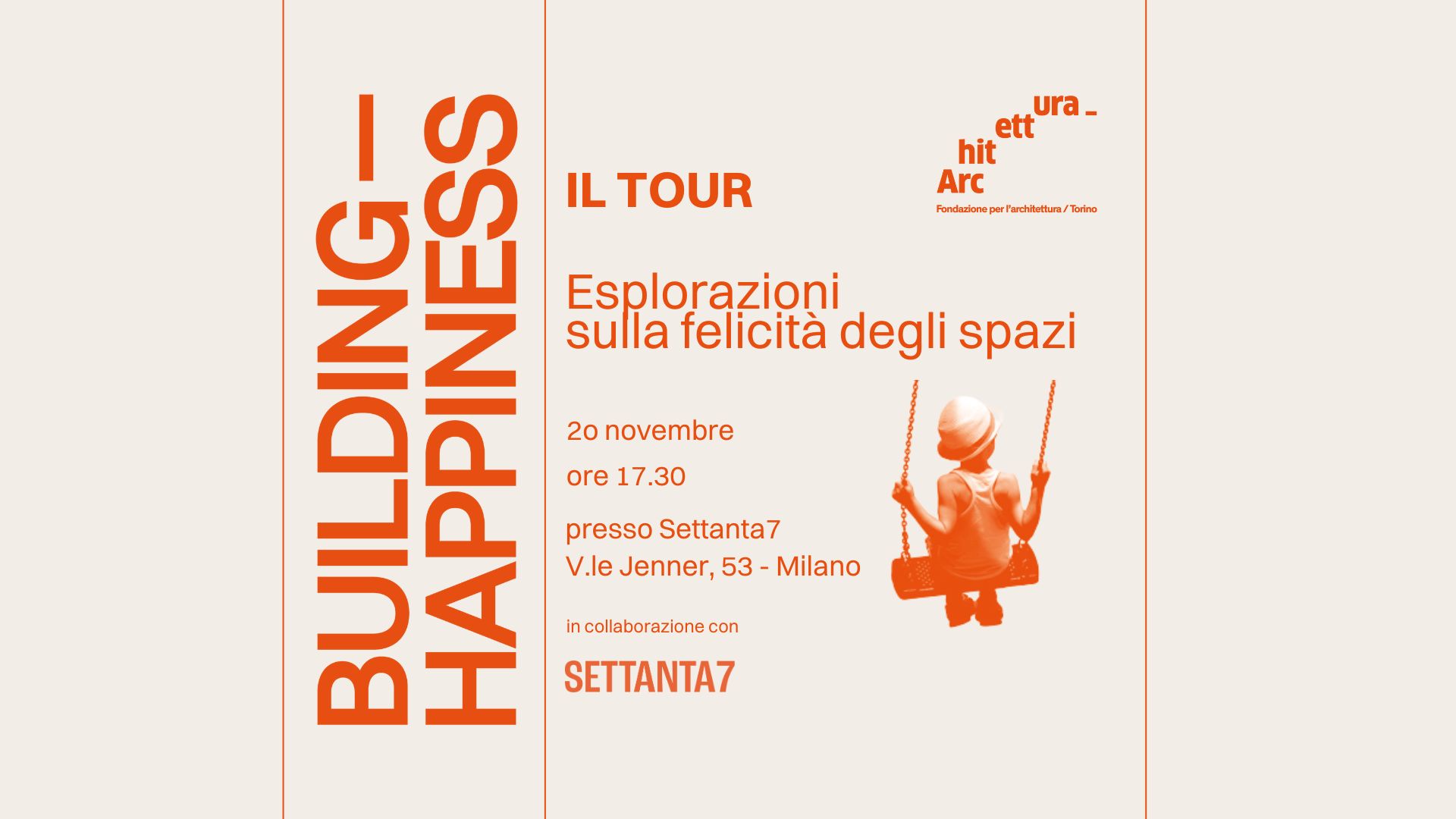 Il Building Happiness Tour è il programma di divulgazione e disseminazione dei contenuti del libro Building Happiness. Esplorazioni sulla felicità degli spazi.